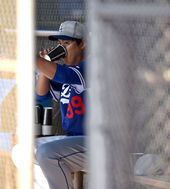 류현진 라이브 피칭 체크하는 허니컷 코치