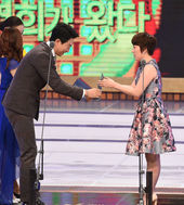 2015.03.12 16: 17주영훈에게 트로피 건네받는 김영희