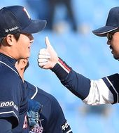 2015.03.12 16: 24오재원,'김강률 향해 엄지 척!'