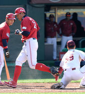 2015.03.13 15: 20최희섭,'폭투 틈타 홈까지 훔쳐요'