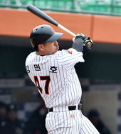2015.03.13 15: 35김선민,'빗방울을 가르며 1타점 적시타!'