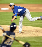 2015.03.13 11: 43역투하는 류현진,'칠테면 쳐봐'