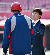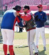 2015.03.14 10: 58양상문 감독,'최희섭과 악수하며 격려'