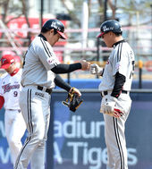 2015.03.15 13: 27오지환-손주인,'좋아! 만루위기 병살로 넘겼어'
