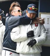 2015.03.17 13: 20장원준,'유희관 강펀치(?)에 헉'