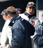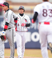 2015.03.17 13: 18유희관,'장원준 향해 장난기 발동'