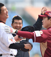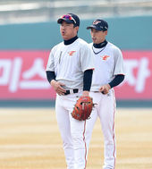 2015.03.17 12: 40심재학 코치,'오윤, 한화 생활은 어때?'