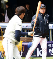 2015.03.18 11: 09최주환,'안경현 위원님 2루수 비법 좀 알려주세요'