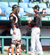 2015.03.19 14: 21강민호-심수창,'오늘 볼 좋은데'