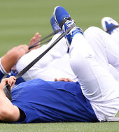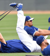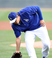 2015.03.19 06: 52류현진,'팔의 피로를 풀어주는 가벼운 스트레칭'