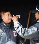 2015.03.20 16: 40유희관,'선글라스 벗으며 마력의 미소 발사'