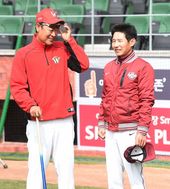 2015.03.21 11: 20인사 나누는 김용희-염경엽,'시범경기가 벌써 막바지네요'