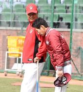 2015.03.21 11: 22김용희 감독과 인사 나누는 염경엽 감독,'뒤에서 살며시~'