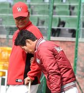 2015.03.21 11: 24김용희 감독에게 인사하는 염경엽 감독,'공손하게'