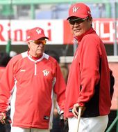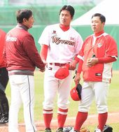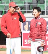 2015.03.21 11: 28환한 미소로 인사 나누는 김용희-염경엽
