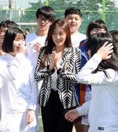 2015.03.24 11: 10하지원,'학생들과 다정한 기념촬영'
