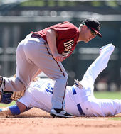 2015.03.24 07: 002루 도루하는 저스틴 터너