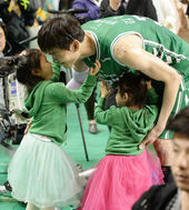 2015.03.27 21: 29두 딸과 승리 기쁨 나누는 김주성 '아빠 뽀뽀'