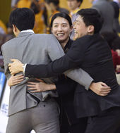 2015.03.27 22: 07전주원-박성배 코치,'위성우 감독님! 저희가 우승했어요'