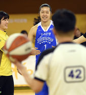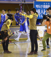 2015.03.27 19: 18인천AG 금메달리스트 최보민,'양궁농구 KB스타즈 위한 퍼포먼스'