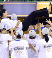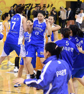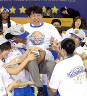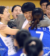 2015.03.27 21: 54헹가래 받는 전주원 코치,'얘들아! 고마워'