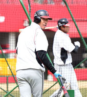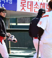 2015.03.28 11: 53장성호,'최준석 주장! 부산 정말 따뜻하네'