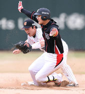 2015.03.28 17: 11한화이글스 나이저 모건, 도루에 성공해도 'T'