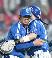 2015.03.31 22: 23임창용,'통산 200세이브 달성! 축하 포옹하는 진갑용'