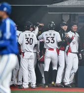 2015.03.31 20: 25마르테의 싹쓸이 안타에 기뻐하는 kt 용병들