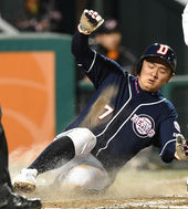 최주환 1득점,'양의지 희생플라이에 홈 쇄도'