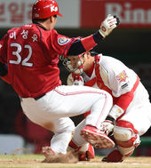 2015.04.01 20: 46이성우-정상호,'홈에서 아찔한 충돌'