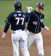 2015.04.01 18: 56민병헌 홈런포 작렬,'장타력 겸비한 1번타자'