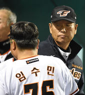 2015.04.02 22: 33'승리의 기쁨 나누는 김성근 감독과 한화 선수들'