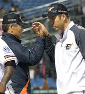 2015.04.02 22: 32김성근 감독,'한화 홈 첫승 모두와 나누는 인사'