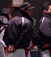 2015.04.02 18: 37박석민-나바로,'감독님 뒤에서 장난기 발동~'
