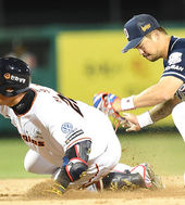 2015.04.02 20: 29오재원 득점,'하나 더 가자'