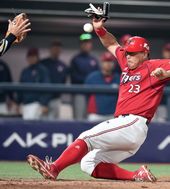 2015.04.03 19: 44홈 쇄도하는 최희섭,'베이스가 코 앞인데!'