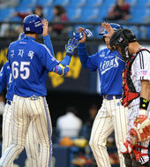 2015.04.03 18: 52구자욱,'승엽 선배, 선취 투런포 날렸어요'