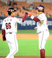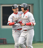 2015.04.05 18: 48솔로포 김하성,'기분좋은 주먹 맞대기'
