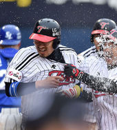 2015.04.05 17: 39정성훈,'빗속에서 끝내기 물 세례'