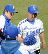 2015.04.07 20: 39마운드에 올리 이야기 나누는 정명원 코치