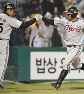 2015.04.07 20: 02최경철,'최태원 코치와 솔로포 하이파이브'