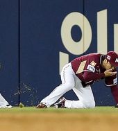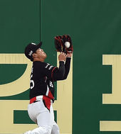 2015.04.07 19: 17중견수 이택근,'타구가 얼굴에 맞았어'