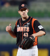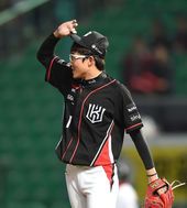 2015.04.07 19: 23박세웅,'배병옥의 호수비에 미소가 절로'
