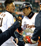 2015.04.07 19: 17이용규,'선취타점 하이파이브'