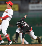 2015.04.07 21: 11김회성,'이렇게 아웃 당하다니'