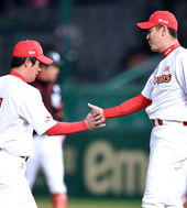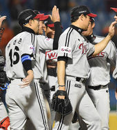 2015.04.08 21: 56임창용-진갑용,'승리의 미소로 하이파이브!'