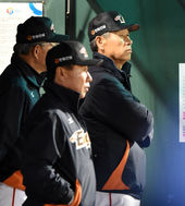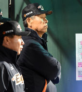 2015.04.08 19: 57김성근 감독,'승리를 위해 서서 경기 본다'