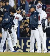 2015.04.08 19: 40부상으로 교체되는 두산 김현수