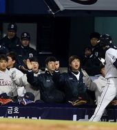 2015.04.08 19: 35두산 더그아웃,'기분 좋은 역전'